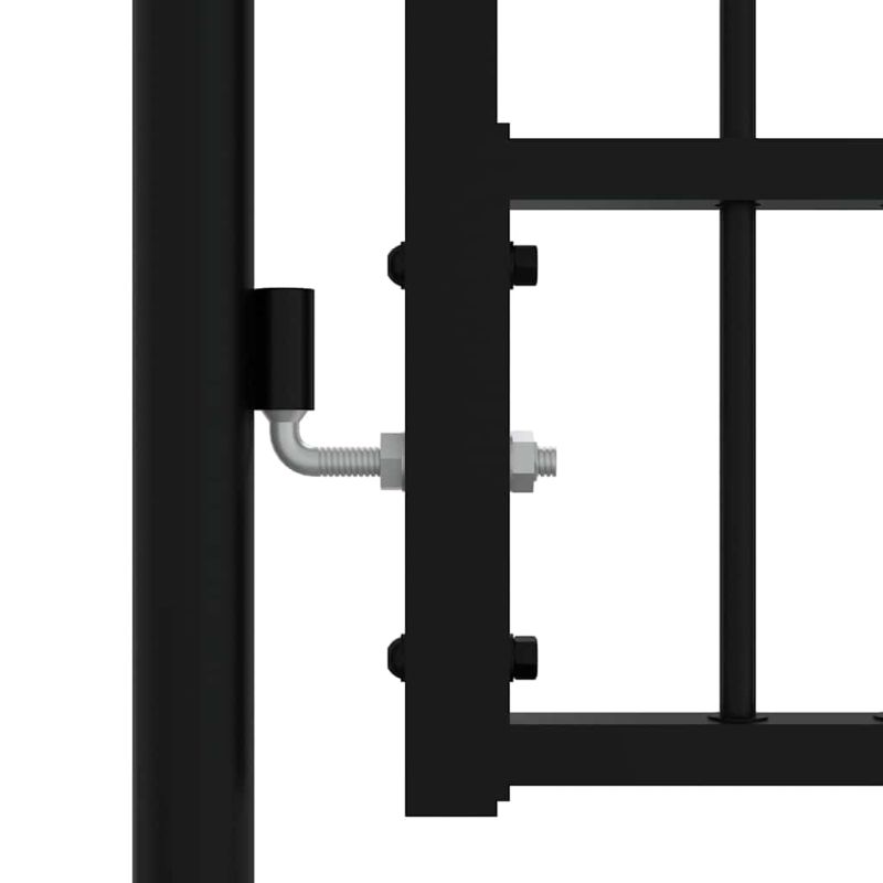 Оградна порта с капак тип „копие“, черна, 406x125 см, прахово боядисана стомана