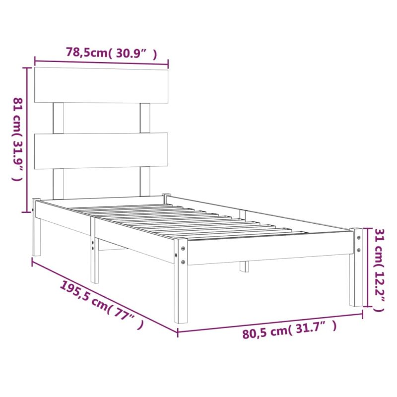Рамка за легло, масивно дърво, 75x190 см, Small Single