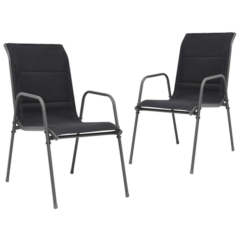 Стифиращи градински столове, 2 бр, стомана и Textilene, черни