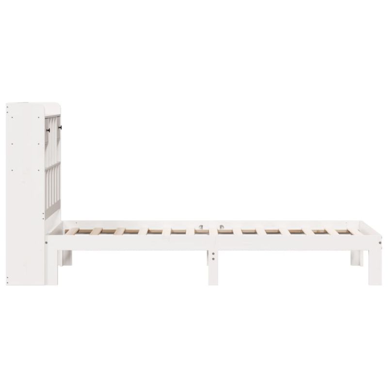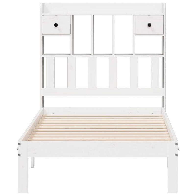 Легло с рафтове за книги, без матрак, бял, 90x190 см, бор масив
