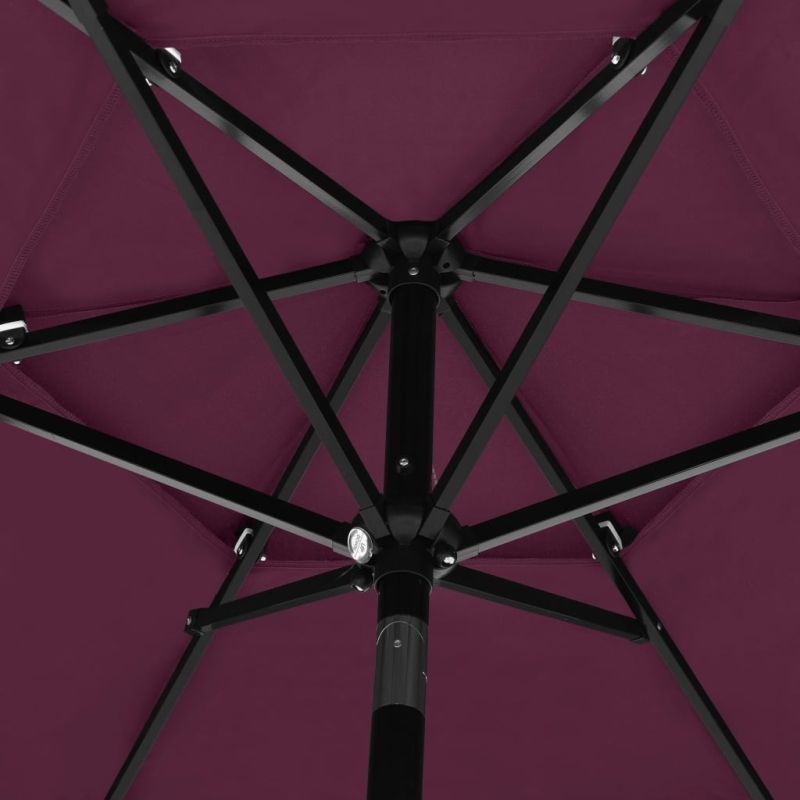 Градински чадър на 3 нива с алуминиев прът, бордо червен, 2,5 м