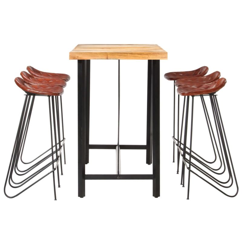 Бар комплект 7 части акациево дърво масив и естествена кожа