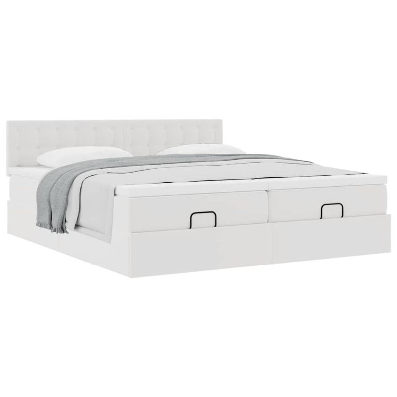 Османска легло с матраци, бяло, 200x200 см, изкуствена кожа