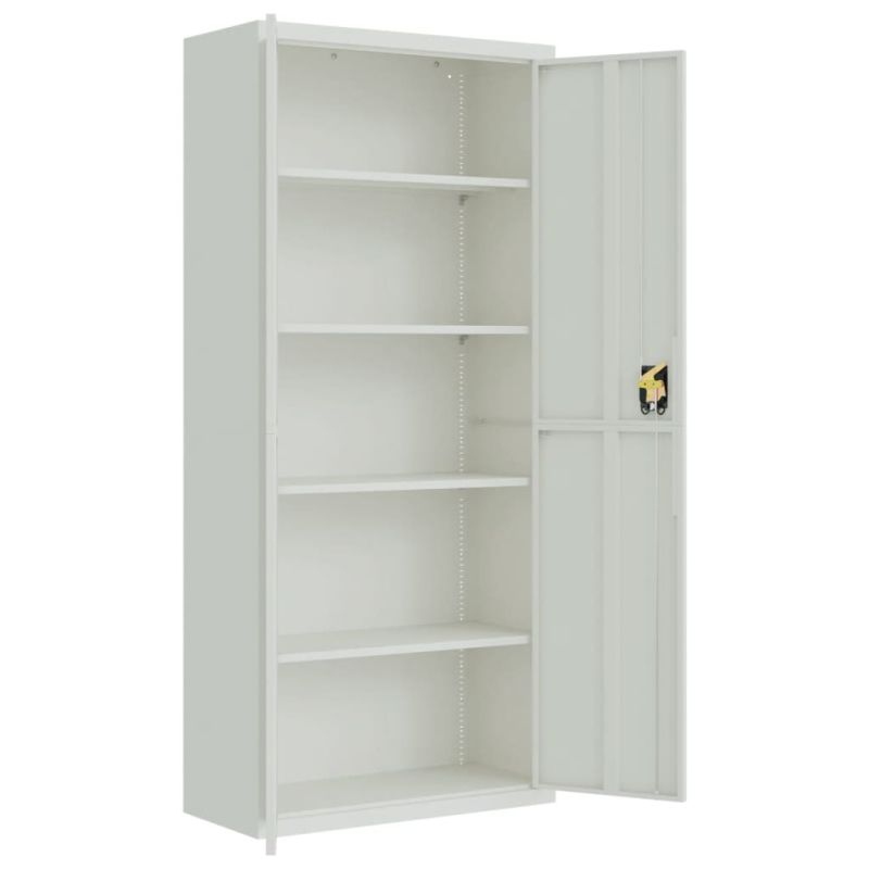 Този изключително висок шкаф за папки, включващ семпъл, но стилен дизайн, ще бъде чудесен избор за поддържане на вашите документи и други офис консумативи добре организирани. Издръжлив материал: Стоманата е изключително твърд и здрав материал. Тя предлага здравина и стабилност. Праховото боядисване на повърхността на стоманата създава защитен слой срещу ръжда, корозия и износване. Изработен от прахово боядисана стомана, шкафът за документи също е лесен за почистване и поддръжка.Регулируеми рафтове: Шкафът за съхранение разполага с 4 регулируеми рафта, които ви позволяват да сортирате спретнато вашите папки в различни категории.Достатъчно място за съхранение: Този офис шкаф осигурява достатъчно място за съхранение на вашите папки и други офис консумативи.Система със заключване: Този заключващ се дизайн гарантира, че папките и важните документи са защитени. Внимание:За предотвратяване на преобръщане този продукт трябва да се използва с предоставения анкер за стена.