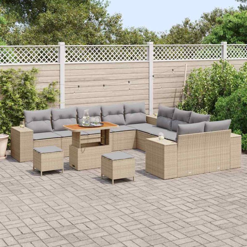 Градински Софа Комплект 13 pcs Бежов и Светло Сив полиратан