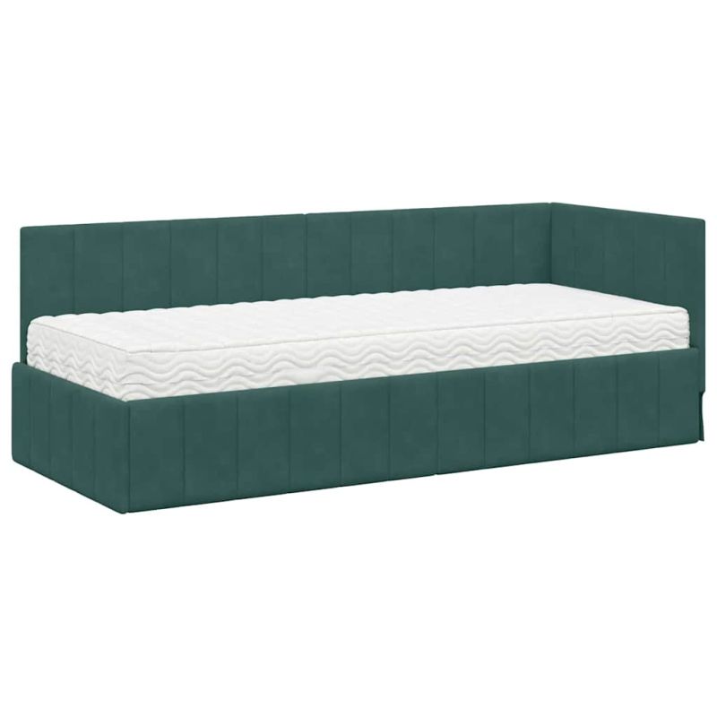 Ъглова рамка за легло с матрак Тъмнозелено 80 x 200 cm Кадифе