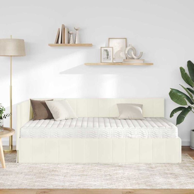 Ъглова рамка за легло с матрак с матрак 2 pcs Крем Кадифе