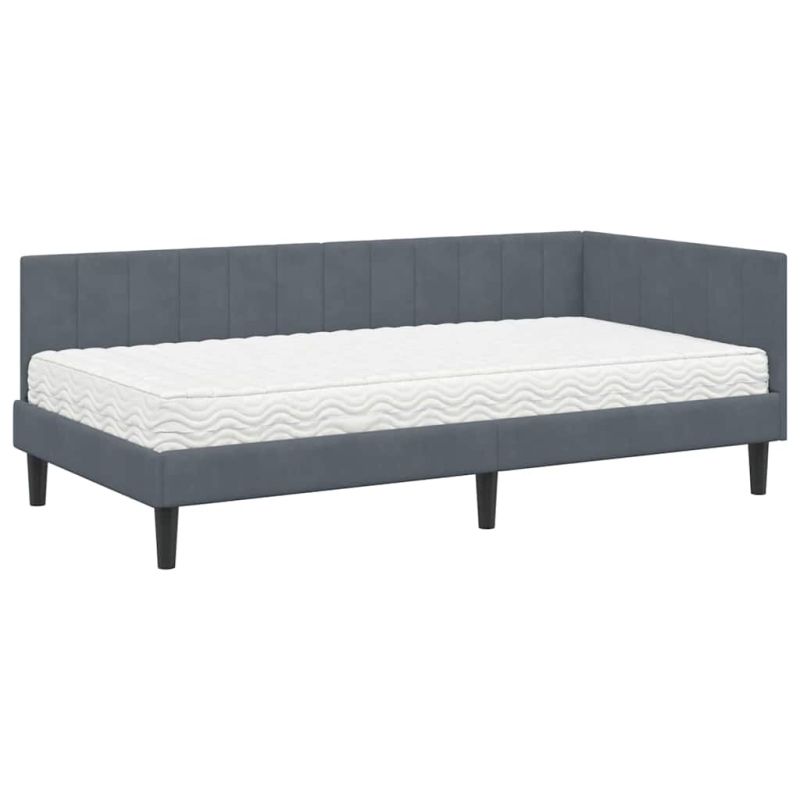 Ъглова рамка за легло с матрак Тъмносив 90 x 190 cm Кадифе