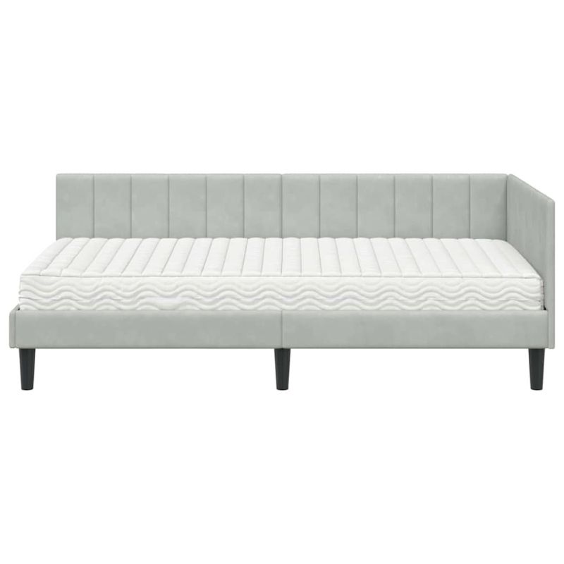 Ъглова рамка за легло с матрак Светлосиво 90 x 200 cm Кадифе