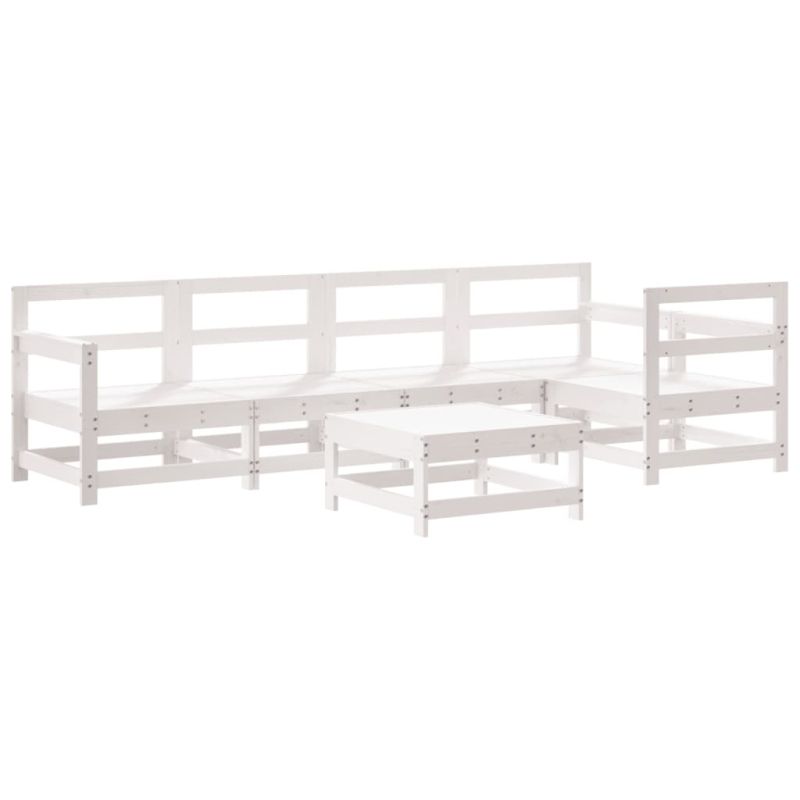 Градински комплект с възглавници, 6 части, бял, дърво масив