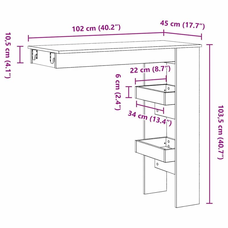 Маса за бар на стената с рафт Черния дъб 102 x 45 x 103,5 см