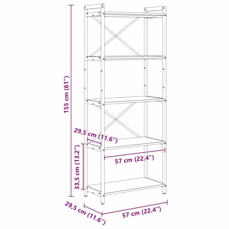 Рафт за книги Черния дъб 60 x 30 x 155 см Инженерно дърво