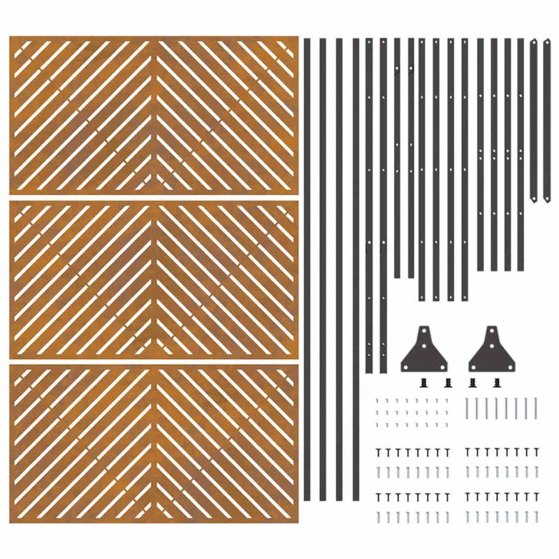 Този екран за уединение в градината е стилен и практичен. Има модерен дизайн с простота и чисти линии, което го прави подходящ за всеки тип градина. Осигурява конфиденциалност и подобрява визията на вашето открито пространство. Стоманената конструкция му придава издръжливост и елегантен вид, идеален за всякакви външни условия. Здраво стоманено строителство Екранът е от висококачествена стомана, която осигурява дълготрайност и здрава конструкция. Ще изглежда страхотно и ще ви служи дълго. Прост и модерен дизайн Със своите чисти линии, екранът е идеален за всяко открито пространство. Можете да го използвате както за разделяне, така и за оформяне на стилни градински кътове. Само за външна употреба Проектиран е да издържи на различни метеорологични условия, което го прави перфектен за градините и терасите. Лесно сглобяване В комплекта има всичко нужно и указания, за да го сглобите бързо и лесно с помощта на друг човек. Доставен като едно цяло Екранът идва готов за монтаж, минимизирайки излишъка от опаковка и улеснявайки настройването, за да можете да се насладите на него веднага.