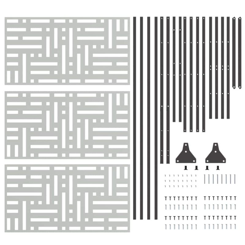 Този екран за уединение в градината е стилен и практичен. Има модерен дизайн с простота и чисти линии, което го прави подходящ за всеки тип градина. Осигурява конфиденциалност и подобрява визията на вашето открито пространство. Стоманената конструкция му придава издръжливост и елегантен вид, идеален за всякакви външни условия. Здраво стоманено строителство Екранът е от висококачествена стомана, която осигурява дълготрайност и здрава конструкция. Ще изглежда страхотно и ще ви служи дълго. Прост и модерен дизайн Със своите чисти линии, екранът е идеален за всяко открито пространство. Можете да го използвате както за разделяне, така и за оформяне на стилни градински кътове. Само за външна употреба Проектиран е да издържи на различни метеорологични условия, което го прави перфектен за градините и терасите. Лесно сглобяване В комплекта има всичко нужно и указания, за да го сглобите бързо и лесно с помощта на друг човек. Доставен като едно цяло Екранът идва готов за монтаж, минимизирайки излишъка от опаковка и улеснявайки настройването, за да можете да се насладите на него веднага.