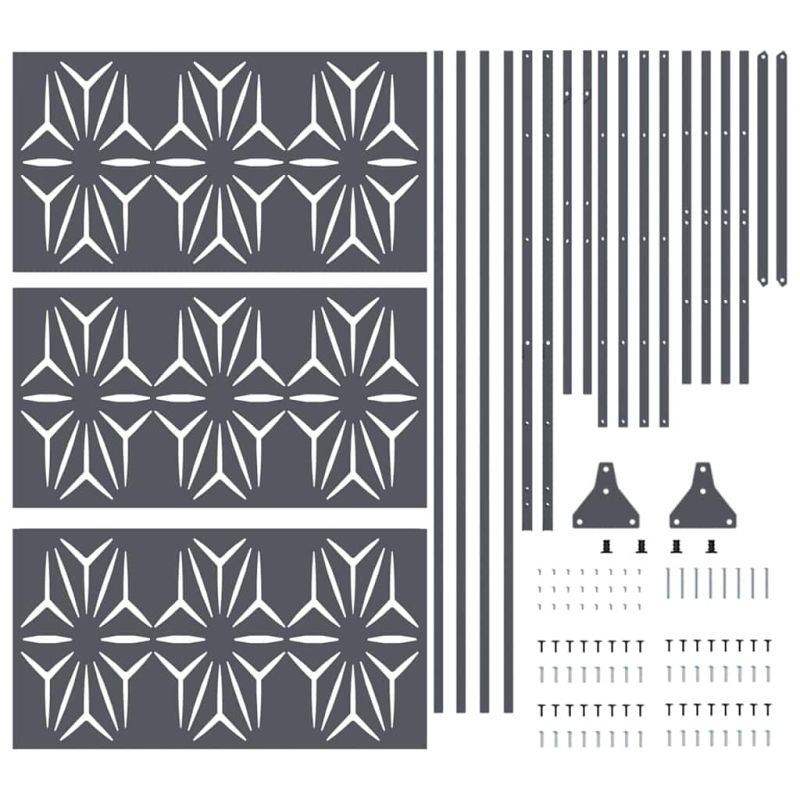Този екран за уединение в градината е стилен и практичен. Има модерен дизайн с простота и чисти линии, което го прави подходящ за всеки тип градина. Осигурява конфиденциалност и подобрява визията на вашето открито пространство. Стоманената конструкция му придава издръжливост и елегантен вид, идеален за всякакви външни условия. Здраво стоманено строителство Екранът е от висококачествена стомана, която осигурява дълготрайност и здрава конструкция. Ще изглежда страхотно и ще ви служи дълго. Прост и модерен дизайн Със своите чисти линии, екранът е идеален за всяко открито пространство. Можете да го използвате както за разделяне, така и за оформяне на стилни градински кътове. Само за външна употреба Проектиран е да издържи на различни метеорологични условия, което го прави перфектен за градините и терасите. Лесно сглобяване В комплекта има всичко нужно и указания, за да го сглобите бързо и лесно с помощта на друг човек. Доставен като едно цяло Екранът идва готов за монтаж, минимизирайки излишъка от опаковка и улеснявайки настройването, за да можете да се насладите на него веднага.