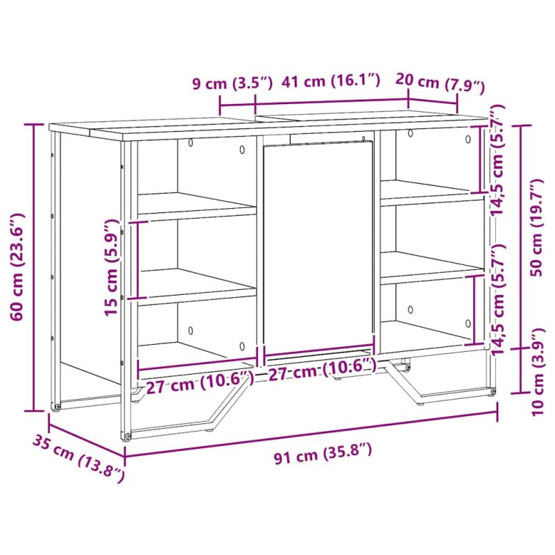 Шкаф за мивка в баня Черния дъб 91 x 35 x 60 см Инженерно дърво