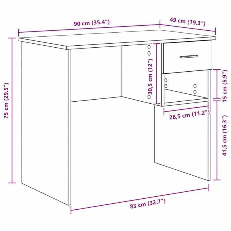 Бюро с чекмедже Циментено сиво 90 x 49 x 75 см Инженерно дърво