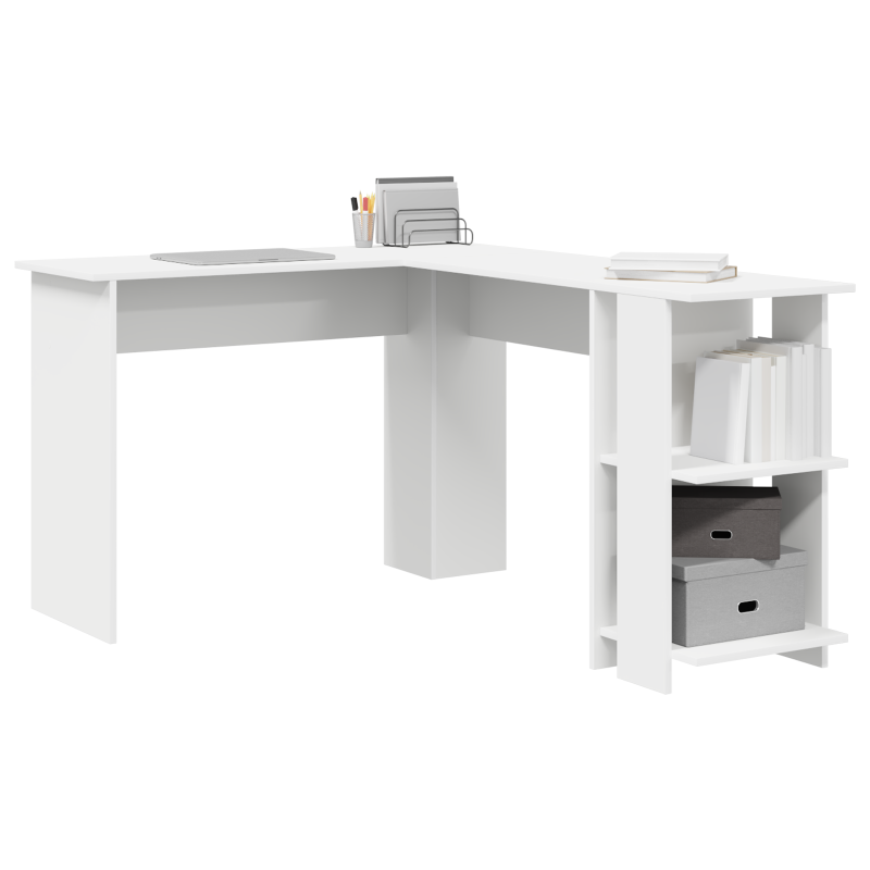 Ъглово бюро с рафт Бяло 140 x 113,5 x 75 см Инженерно дърво
