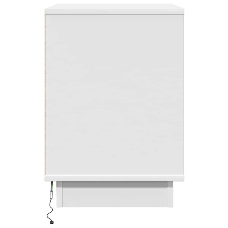 Това стилно нощно шкафче представя съвременен вид с акцент на простота, с чисти линии и минимално орнаментиране. Идеално е за всяка спалня и служи като удобно място за лампи, будилници или лични вещи. Правоъгълната му форма и конструкция от инженерна дървесина добавят стил и функционалност, като балансират естетиката и полезността. Строителство от инженерна дървесина Изработено от инженерна дървесина, това шкафче е стабилно и с изчистен завършек. Известна с издръжливостта си, инженерната дървесина е идеален избор за мебели. Повърхността му е гладка и лесна за поддържане. LED осветление с USB С LED гирлянди, захранвани чрез USB, нощното шкафче добавя мека светлина. Това е енергийно ефективно решение, което придава чар на вашето пространство. Подобрете нощната атмосфера с това осветление. Съхранение с врата с панти С вратата с панти, шкафа предлага дискретно съхранение на необходимото. Функционалният дизайн осигурява лесен достъп и поддържа чистота. Скрийте безредието и запазете подредеността. Идеално за вътрешна употреба Проектирано за закрити помещения, това шкафче е перфектно за различни стилове. С дизайна си, то се вписва отлично в минималистични, традиционни или еклектични интериори. Лесна поддръжка Поддържайте го с лесни инструкции: просто избършете с влажна кърпа, за да премахнете праха. Така поддържането му е просто, запазвайки отличния му вид. Моля, обърнете внимание, че трябва да използвате само сертифициран вход DC 5V. По-високото напрежение може да доведе до прегряване и повреда на устройството и потенциален риск от пожар. Не свързвайте този продукт към захранване, различно от описаното в ръководството, на табелката с данни или изрично препоръчано от vidaXL. Този уред не трябва да се използва от деца под 15 години, както и от лица с намалени физически, сетивни или умствени способности или с липса на опит и познания относно използването на електронни уреди. Електричеството е опасно. Повредите и неправилният монтаж, употреба или модификации (подмяна на отделни компоненти) могат да доведат до повреда на уреда, което да доведе до токов удар и опасност за потребителя. Не използвайте този продукт във взривоопасна атмосфера, като например при наличие на запалими течности, газове и прах, или при температура над 50 градуса по Целзий. Не включвайте продукта, ако свързващият кабел или захранването са видимо повредени. Ако външният гъвкав кабел или захранващ кабел на това осветително тяло е повреден, той трябва да бъде заменен изключително от производителя или негов сервизен агент, или от подобно квалифицирано лице, за да се избегне опасност. Изключете захранването по време на монтажа и поддръжката. Уверете се, че крушките са изстинали. Светлинният източник на това осветително тяло не може да се заменя. Когато светлинният източник достигне края на своя живот, цялото осветително тяло трябва да се замени. Само за употреба на закрито, не използвайте този продукт на открито.