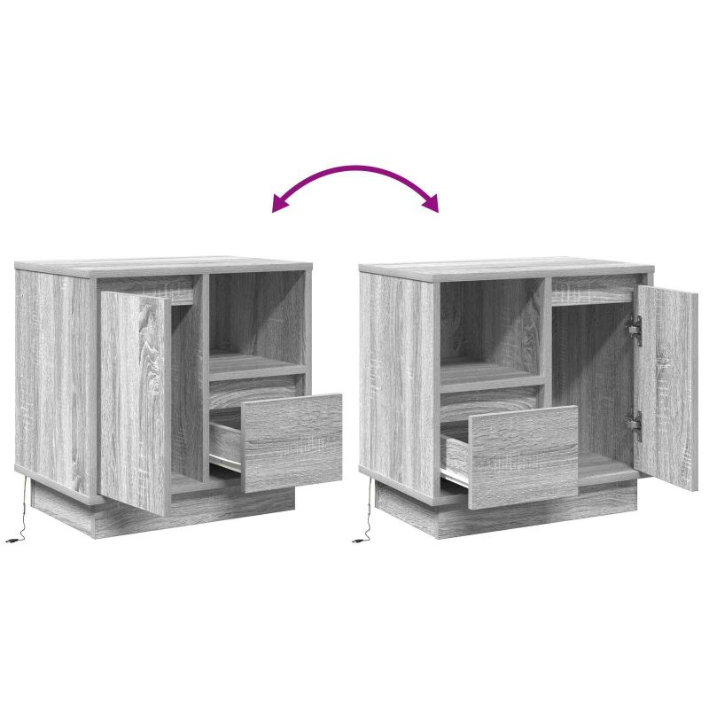 Това нощно шкафче е чиста работа и е идеално за всяка спалня! С елегантния си дизайн и минимум украшение, то предлага удобно място за лампи или лични вещи. Правоъгълната форма и инженерната дървесина са супер елегантни и практични. Конструкция от инженерна дървесина Изработено от инженерна дървесина, това нощно шкафче е стабилно и красиво завършено. Супер здраво е и устоява на деформации, така че ще ви служи дълго. Лесно е за поддържане и изглежда отлично. USB-захранвани LED светлини USB-светлинките дават нежна светлина, добавяйки уют в стаята. Идеални са за икономично осветление и внасят невероятна атмосфера в обстановката. Съхранение с врата на панти С врата на панти е супер дискретно и практично за съхранение на нощните ви вещи. Лесен достъп, без да правите безредици - идеално за чисти пространства. Идеално за вътрешна употреба Тук е направено за спални и пасва на всякакви стилове - от минималистичен до традиционен. Лесни инструкции за поддръжка Просто избърсвайте с влажна кърпа, за да поддържате всичко усмихнато и чисто.