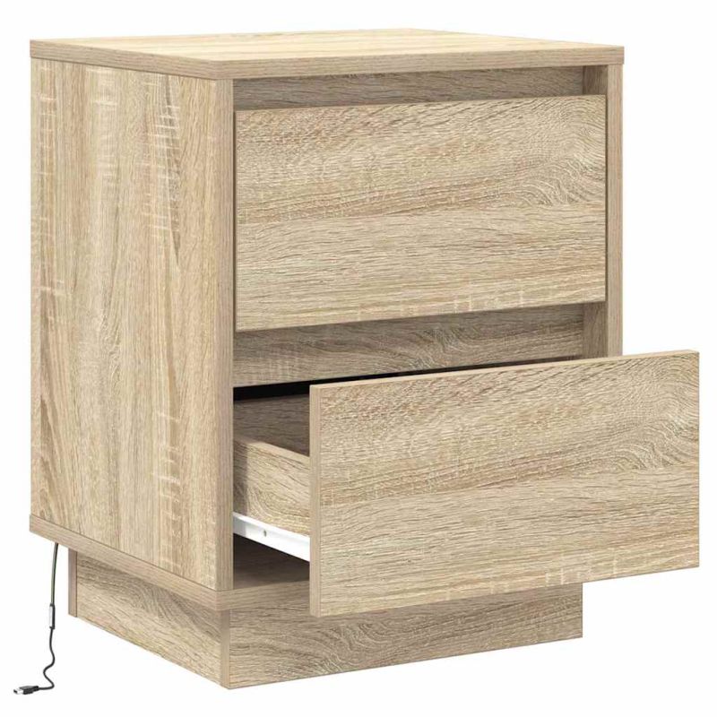 Този модерен нощен шкаф е символ на стилна простота и функционалност, идеален за всяка съвременна спалня. С чисти линии и прост дизайн, той съчетава форма и функция, предоставяйки практично решение за нощно съхранение. Направен е да осигури удобство – помещава лампа за четене, будилник или лични вещи все пак близо до ръката ви. Конструкция от инженерна дървесина: Изграден от качествена инженерна дървесина, този нощен шкаф е супер здрав. Гладкото покритие подобрява съвременния му вид и е функционално. Тази конструкция осигурява дълготрайност и се вписва в различни стилове на декорация в спалнята. Функционален USB източник: Лесно достъпен USB порт, който решава нуждите на съвременната технология. Зареждайте телефона, лампата или будилника директно от спалнята и увеличете удобството в ежедневието. Интегрирано LED осветление: Осветете стаята си с LED лампичките на шкафа. Те дават меко сияние, идеално за релаксираща атмосфера вечер. Контролът е лесен, захранва се от USB порта. Модерен естетически дизайн: Прост, но модерен дизайн, който добавя елегантен щрих на спалнята. Чистите линии без излишна декорация лесно се съчетават с различни стилове на интериора – от модерни лофтове до уютни традиционни пространства. Лесна поддръжка: Поддържането на шкафа е лесно - просто протирайте с влажна кърпа, за да държите праха и мръсотията навън. По този начин, вашият шкаф ще изглежда като нов дори след години ползване. Моля, обърнете внимание, че трябва да използвате само сертифициран вход DC 5V. По-високото напрежение може да доведе до прегряване и повреда на устройството и потенциален риск от пожар. Не свързвайте този продукт към захранване, различно от описаното в ръководството, на табелката с данни или изрично препоръчано от vidaXL. Този уред не трябва да се използва от деца под 15 години, както и от лица с намалени физически, сетивни или умствени способности или с липса на опит и познания относно използването на електронни уреди. Електричеството е опасно. Повредите и неправилният монтаж, употреба или модификации (подмяна на отделни компоненти) могат да доведат до повреда на уреда, което да доведе до токов удар и опасност за потребителя. Не използвайте този продукт във взривоопасна атмосфера, като например при наличие на запалими течности, газове и прах, или при температура над 50 градуса по Целзий. Не включвайте продукта, ако свързващият кабел или захранването са видимо повредени. Ако външният гъвкав кабел или захранващ кабел на това осветително тяло е повреден, той трябва да бъде заменен изключително от производителя или негов сервизен агент, или от подобно квалифицирано лице, за да се избегне опасност. Изключете захранването по време на монтажа и поддръжката. Уверете се, че крушките са изстинали. Светлинният източник на това осветително тяло не може да се заменя. Когато светлинният източник достигне края на своя живот, цялото осветително тяло трябва да се замени. Само за употреба на закрито, не използвайте този продукт на открито.