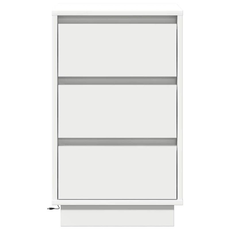Този модерен нощен шкаф е страхотно парче, което добавя стил в спалнята с минималистичния си дизайн. Изработен е от качествена инженерна дървесина и съчетава практичност с визуална привлекателност. Идеален е за съхранение на лични вещи, придавайки изтънченост на интериора. Материали: Изработен е от инженерна дървесина, което осигурява дълготрайност и устойчивост на износване. Лесно е за почистване - просто избърсваш с влажна кърпа. Включени компоненти: Има здрава задна част и вградени LED светлинки, които създават приятна обстановка. ИUSB портът е удобен за зареждане на устройства. Функции/Функционалност/Дизайн: С правоъгълна форма и практичност, този нощен шкаф се побира лесно до леглото, предлагащ достатъчно място за лампи, книги и други вещи, без да става претрупано. Препоръчителни употреби: Идеален за спалнята, шкафа осигурява удобство за нощни ритуали. USB портът е супер удобен, а LED светлините са перфектни за четене преди сън. Поддръжка: Удобен за поддръжка - просто го избърсваш с влажна кърпа, за да го запазиш чист и атрактивен. Моля, обърнете внимание, че трябва да използвате само сертифициран вход DC 5V. По-високото напрежение може да доведе до прегряване и повреда на устройството и потенциален риск от пожар. Не свързвайте този продукт към захранване, различно от описаното в ръководството, на табелката с данни или изрично препоръчано от vidaXL. Този уред не трябва да се използва от деца под 15 години, както и от лица с намалени физически, сетивни или умствени способности или с липса на опит и познания относно използването на електронни уреди. Електричеството е опасно. Повредите и неправилният монтаж, употреба или модификации (подмяна на отделни компоненти) могат да доведат до повреда на уреда, което да доведе до токов удар и опасност за потребителя. Не използвайте този продукт във взривоопасна атмосфера, като например при наличие на запалими течности, газове и прах, или при температура над 50 градуса по Целзий. Не включвайте продукта, ако свързващият кабел или захранването са видимо повредени. Ако външният гъвкав кабел или захранващ кабел на това осветително тяло е повреден, той трябва да бъде заменен изключително от производителя или негов сервизен агент, или от подобно квалифицирано лице, за да се избегне опасност. Изключете захранването по време на монтажа и поддръжката. Уверете се, че крушките са изстинали. Светлинният източник на това осветително тяло не може да се заменя. Когато светлинният източник достигне края на своя живот, цялото осветително тяло трябва да се замени. Само за употреба на закрито, не използвайте този продукт на открито.
