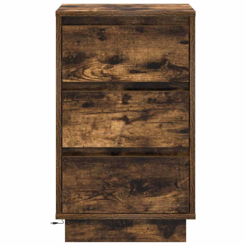 Този модерен нощен шкаф е страхотно парче, което добавя стил в спалнята с минималистичния си дизайн. Изработен е от качествена инженерна дървесина и съчетава практичност с визуална привлекателност. Идеален е за съхранение на лични вещи, придавайки изтънченост на интериора. Материали: Изработен е от инженерна дървесина, което осигурява дълготрайност и устойчивост на износване. Лесно е за почистване - просто избърсваш с влажна кърпа. Включени компоненти: Има здрава задна част и вградени LED светлинки, които създават приятна обстановка. ИUSB портът е удобен за зареждане на устройства. Функции/Функционалност/Дизайн: С правоъгълна форма и практичност, този нощен шкаф се побира лесно до леглото, предлагащ достатъчно място за лампи, книги и други вещи, без да става претрупано. Препоръчителни употреби: Идеален за спалнята, шкафа осигурява удобство за нощни ритуали. USB портът е супер удобен, а LED светлините са перфектни за четене преди сън. Поддръжка: Удобен за поддръжка - просто го избърсваш с влажна кърпа, за да го запазиш чист и атрактивен. Моля, обърнете внимание, че трябва да използвате само сертифициран вход DC 5V. По-високото напрежение може да доведе до прегряване и повреда на устройството и потенциален риск от пожар. Не свързвайте този продукт към захранване, различно от описаното в ръководството, на табелката с данни или изрично препоръчано от vidaXL. Този уред не трябва да се използва от деца под 15 години, както и от лица с намалени физически, сетивни или умствени способности или с липса на опит и познания относно използването на електронни уреди. Електричеството е опасно. Повредите и неправилният монтаж, употреба или модификации (подмяна на отделни компоненти) могат да доведат до повреда на уреда, което да доведе до токов удар и опасност за потребителя. Не използвайте този продукт във взривоопасна атмосфера, като например при наличие на запалими течности, газове и прах, или при температура над 50 градуса по Целзий. Не включвайте продукта, ако свързващият кабел или захранването са видимо повредени. Ако външният гъвкав кабел или захранващ кабел на това осветително тяло е повреден, той трябва да бъде заменен изключително от производителя или негов сервизен агент, или от подобно квалифицирано лице, за да се избегне опасност. Изключете захранването по време на монтажа и поддръжката. Уверете се, че крушките са изстинали. Светлинният източник на това осветително тяло не може да се заменя. Когато светлинният източник достигне края на своя живот, цялото осветително тяло трябва да се замени. Само за употреба на закрито, не използвайте този продукт на открито.