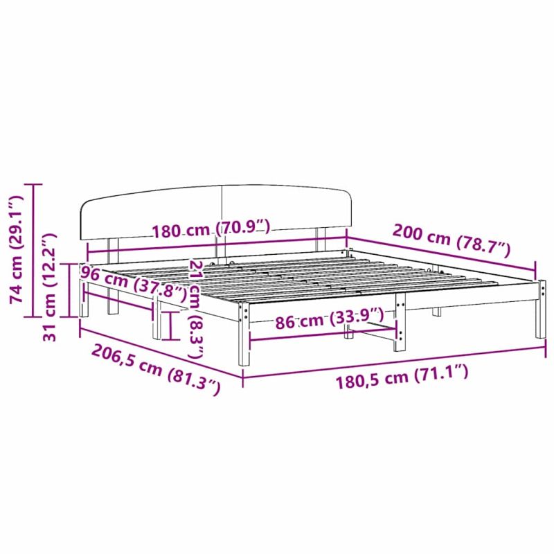 Рамка за легло Естествен 180 x 200 cm Солидно борово дърво