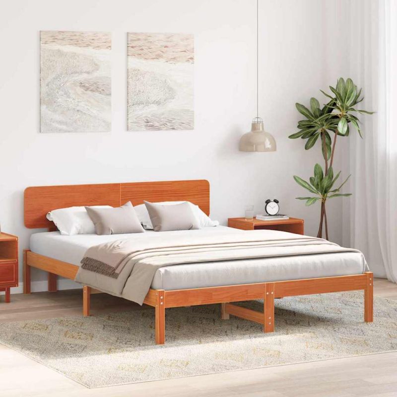 Този леглови каркас е проектиран с чисти линии и минималистичен стил, създавайки перфектно фокусно място в спалнята. От масивна борова дървесина, той е здрав и устойчив. Изчистеният профил му позволява да бъде универсален – идеален е за различни стилове, от съвременни до класически. Леглото съчетава простота и функционалност, създавайки уютна обстановка за спокойни нощи. Премиум конструкция от борова дървесина Легловият каркас е изработен от висококачествена борова дървесина, известна със своята здравина. Естествената топлина на борова дървесина създава уютна атмосфера, правейки леглото функционално и красиво в спалнята ви. Стилна табла Леглото идва с табла от борова дървесина, която увеличава както стилността, така и функционалността. Таблата не само допринася за естетиката, а и осигурява комфорт. Фиксирана рамка с ламели Оснащена с не-гъвкава фиксирана рамка, леглото предлага стабилна опора за матрака, предотвратявайки движението. Идеално е за комфортен сън и надеждна основа. Лесна поддръжка Повърхността е устойчива на прах и петна, затова поддържането е панша – просто избърсвайте с влажна кърпа. Минималистични крака С квадратни крака от борова дървесина, рамката представлява здрав и стилен подход. Краката придават надеждност и се интегрират отлично в съвременния или традиционния интериор.