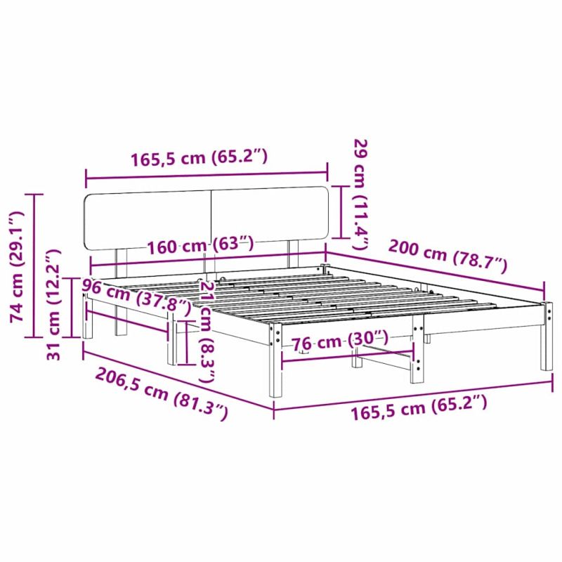 Рамка за легло с таблото Бяло 160 x 200 cm Солидно борово дърво
