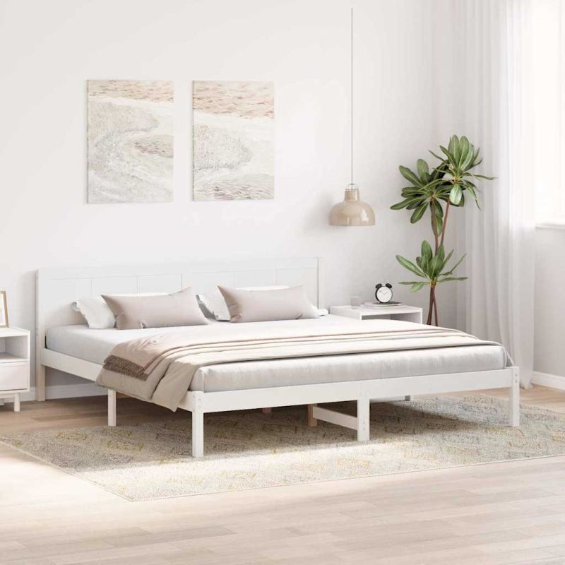 Рамка за легло Бяло 200 x 200 cm Масивна борова дървесина