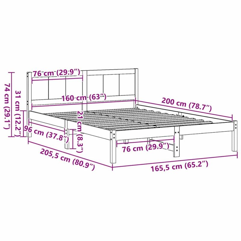 Рамка за легло Кафяво 160 x 200 cm Масивна борова дървесина