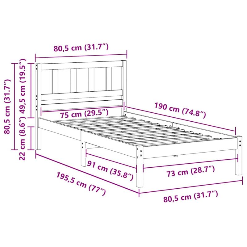 Рамка за легло с таблото Кафяво с восъчно покритие 75 x 190 cm