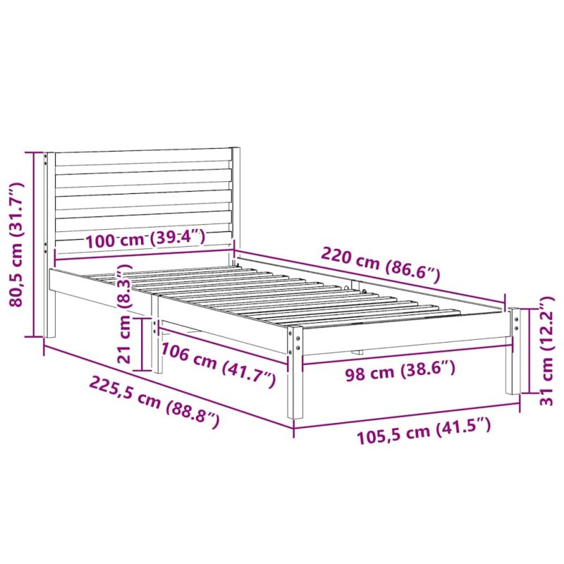 Начало Дом и градина Мебели Легла и аксесоари Легла и рамки за легла Рамка за легло Кафяво 100 x 220 cm Солидно борово дърво