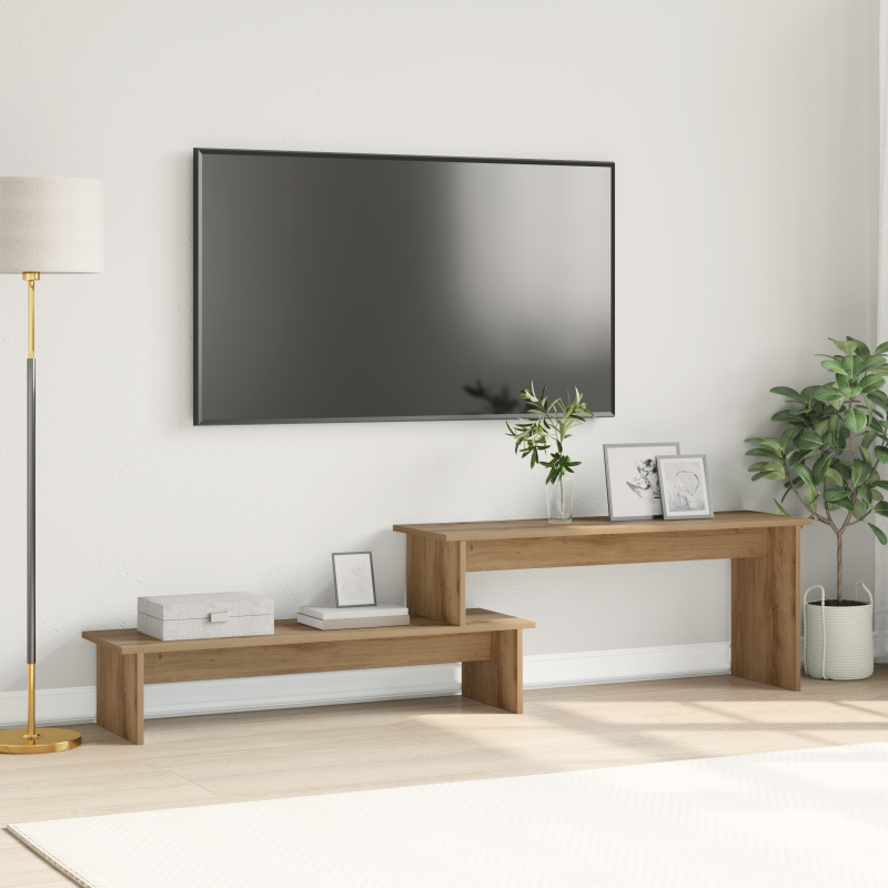 Този стенен ТВ шкаф перфектно съчетава стил и практичност. С правоъгълната си форма той използва пространството максимално, без да жертва вида си. Идеален е за съвременни домове и предлага начин да организирате всекидневната без компромиси с естетиката. С чистите си линии и минималистичния си дизайн той се вписва чудесно в модерен интериор, съчетавайки функционалност и елегантност. Изработен от инженерна дървесина Комплектът е изработен от устойчиво инженерно дърво, което съчетава здравина и модерен стил. Този материал е устойчив на износване и многофункционален. Многофункционални рафтове Рафтовете са проектирани така, че да побират разнообразие от вещи – от техника до декорация. Гъвкавостта им позволява удобно организиране. Стенен монтаж Този шкаф се монтира на стената, което спестява място и създава подреден вид. Лесно става почистването под него. Лесна инсталация Ще получите и инструкции за сглобяване, така че две души да могат бързо и лесно да го инсталират. Комплексни опции за съхранение Шкафът има проектирани отделения за медийни устройства и декорации, помага ви да поддържате ред в пространството.
