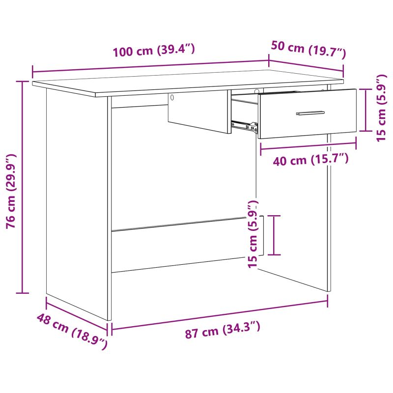 Това стилно бюро с елегантен правоъгълен дизайн е основна част за всяко домашно офис пространство или учебна стая. Изработено от качествена инженерна дървесина, което му придава модерен вид и чисти линии, бюрото е идеално за малки пространства, така че е супер подходящо за студенти и професионалисти, които искат място за работа или писане на лаптоп. Размерите му (100 x 50 x 76 см) го правят компактен и удобен. Премиум материали: Бюрото е направено от инженерна дървесина, избрана за издръжливост и гладка повърхност, осигурявайки надеждно работно пространство, което издържа на времето, като съчетава стил с практичност. Функционални компоненти: Металните дръжки са проектирани за лесна употреба, а чекмеджетата предлагат удобства за организация и достъп до важните неща. Те добавят стил, който подчертава минималистичния дизайн на бюрото. Стилни характеристики: Бюро с модерен стил, което комбинира простота и функционалност. Лесно се вписва в различни стаи и отговаря на нуждите на съвременните работни пространства. Многофункционални приложения: Подходящо е за учебни среди, домашни офиси и малки работни кътове, бюрото поддържа дейности като писане и работа на лаптоп, комбинирайки стил и практичност. Лесна поддръжка: Поддържайте бюрото чисто, просто го избърсвайте с кърпа. То е проектирано за вътрешно ползване и е идеално за резиденциални пространства, предлага години на употреба без интензивна поддръжка.
