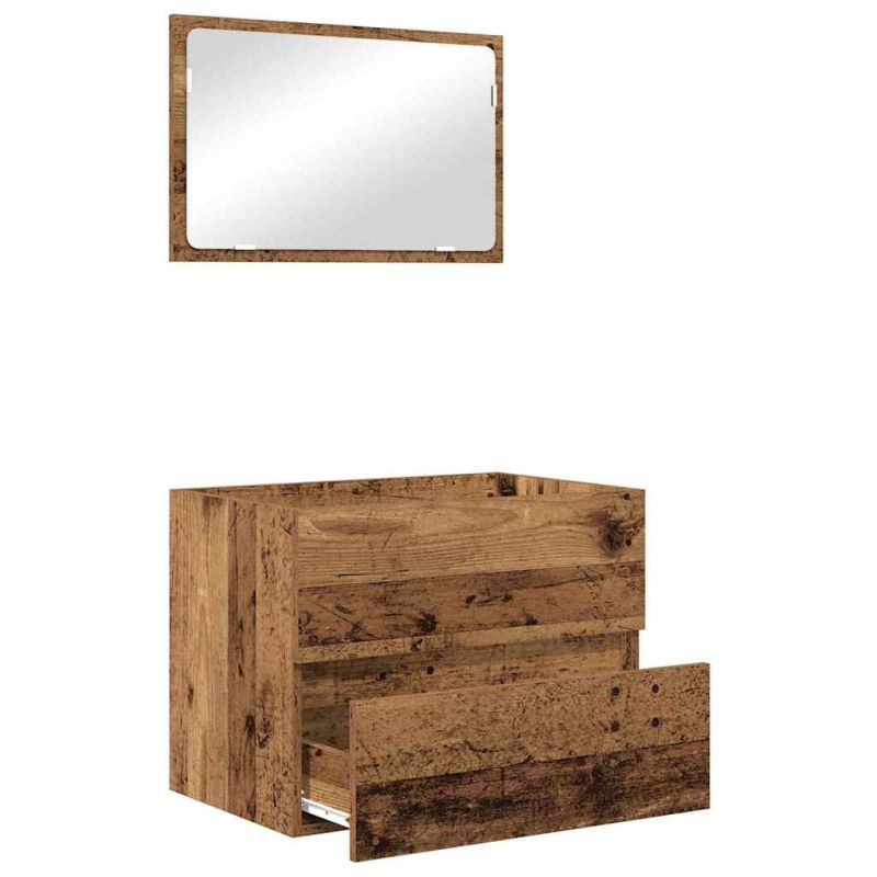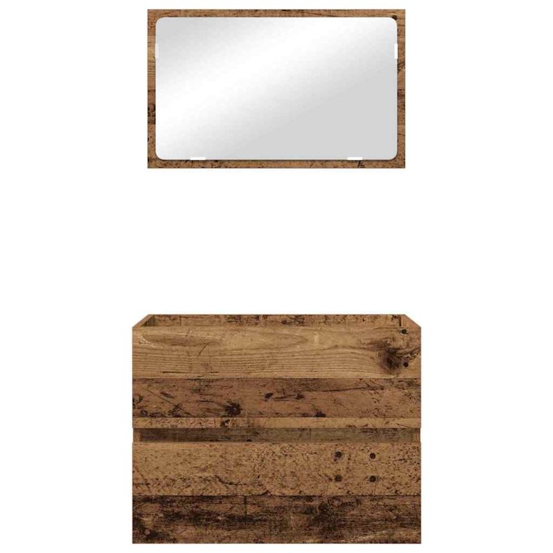 Комплект мебели за баня с чекмедже с огледало 2 pcs Старо дърво