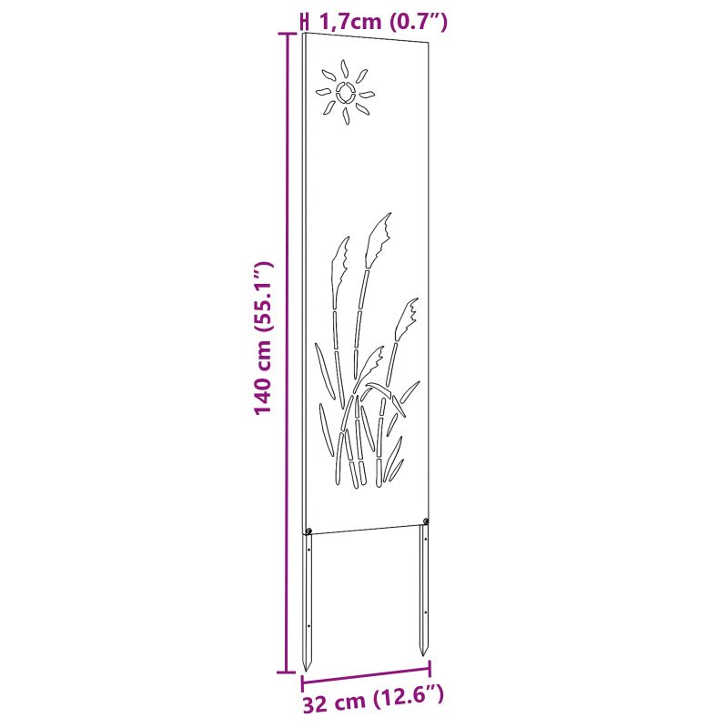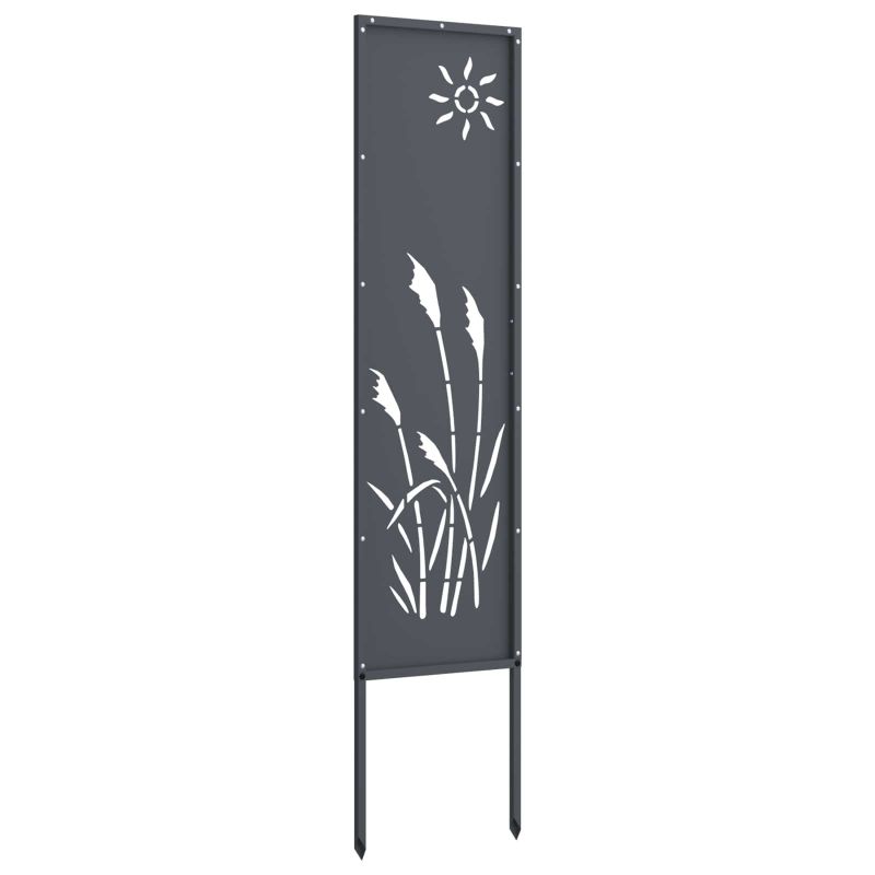 Този декоративен екран за градинска неприкосновеност е стилно решение, което подобрява всяко външно пространство. С елегантен, правоъгълен дизайн и красиви инкрустации, той добавя характер на градината или терасата, като същевременно осигурява нужната неприкосновеност. Изработен от матова стомана, той изглежда изискан, без излишен блясък. Идеален за хора, които искат да създадат уютно кътче на открито, този екран съчетава функционалност с привлекателен вид, ставайки незаменим елемент за всяка декорация. Състав на материала: Изработен от висококачествена стомана, този екран е супер устойчив и издръжлив на всякакво време, идеален за дълготрайна употреба на открито. Материалът е с матово покритие, който спира блясъка, запазвайки стилния си външен вид. Перфектен за създаване на уединено пространство в градината, той е с надеждна конструкция. Декоративни елементи: С уникалните украшения, екранът внася елегантност в всяко открито пространство. Орнаментите му добавят артистичен щрих, който ще вдъхнови всеки дизайн ентусиаст. Този декоративен елемент не само че подобрява визията, но и добавя личен почерк на всяка градина, правейки я по-привлекателна и уютна. Лесна инсталация: Проектиран за бърза и безпроблемна инсталация, екранът лесно се вкопава в земята, без да се нуждае от сложни инструменти. Това удобство го прави подходящ за всякакви потребители, от начинаещи градинари до опитни ландшафтни специалисти, гарантирайки бързо и лесно поставяне. Функционален дизайн: С правоъгълната си форма и здрава структура, екранът служи едновременно и като декоративен преградник, и като защита на неприкосновеността на открито. Функцията му е важна за създаване на уютна обстановка на тераси или градински секции, позволявайки на хората да се радват на своето пространство без смущения. Съвети за поддръжка: Проектиран за открито, този екран изисква минимални усилия за поддръжка. Почиствайте стоманената повърхност периодично с суха кърпа, за да запазите качеството му. Избягвайте абразивни материали, за да осигурите, че екранът остава както защитен, така и естетически приятно.