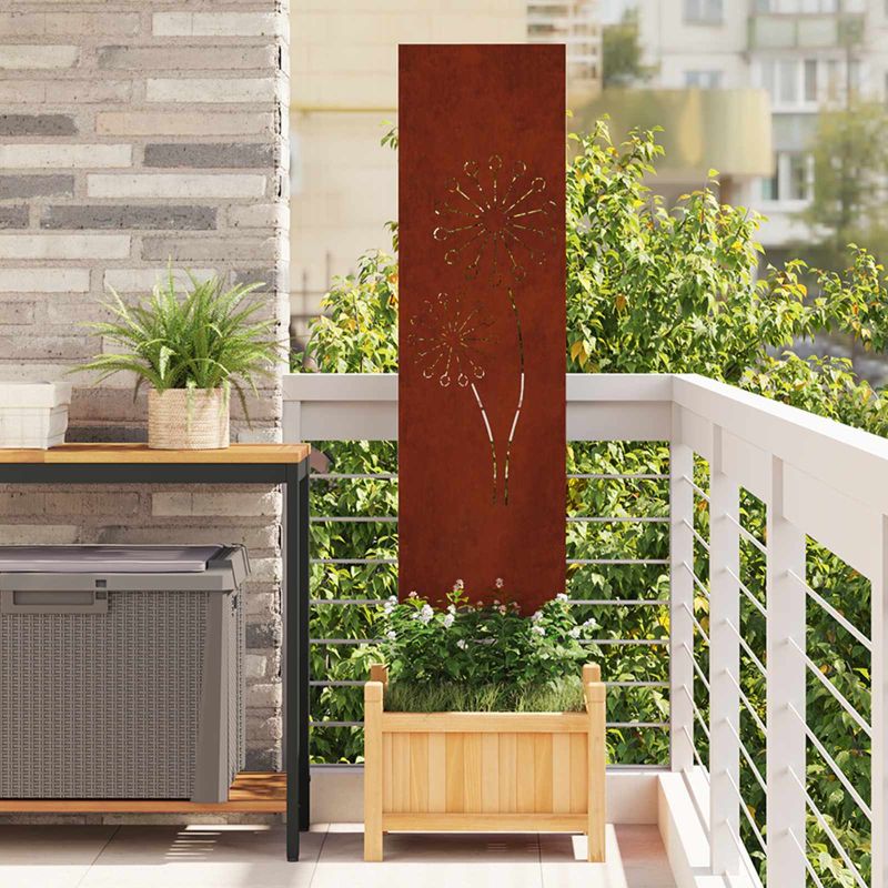 Този декоративен екран за градинска неприкосновеност е стилно решение, което подобрява всяко външно пространство. С елегантен, правоъгълен дизайн и красиви инкрустации, той добавя характер на градината или терасата, като същевременно осигурява нужната неприкосновеност. Изработен от матова стомана, той изглежда изискан, без излишен блясък. Идеален за хора, които искат да създадат уютно кътче на открито, този екран съчетава функционалност с привлекателен вид, ставайки незаменим елемент за всяка декорация. Състав на материала: Изработен от висококачествена стомана, този екран е супер устойчив и издръжлив на всякакво време, идеален за дълготрайна употреба на открито. Материалът е с матово покритие, който спира блясъка, запазвайки стилния си външен вид. Перфектен за създаване на уединено пространство в градината, той е с надеждна конструкция. Декоративни елементи: С уникалните украшения, екранът внася елегантност в всяко открито пространство. Орнаментите му добавят артистичен щрих, който ще вдъхнови всеки дизайн ентусиаст. Този декоративен елемент не само че подобрява визията, но и добавя личен почерк на всяка градина, правейки я по-привлекателна и уютна. Лесна инсталация: Проектиран за бърза и безпроблемна инсталация, екранът лесно се вкопава в земята, без да се нуждае от сложни инструменти. Това удобство го прави подходящ за всякакви потребители, от начинаещи градинари до опитни ландшафтни специалисти, гарантирайки бързо и лесно поставяне. Функционален дизайн: С правоъгълната си форма и здрава структура, екранът служи едновременно и като декоративен преградник, и като защита на неприкосновеността на открито. Функцията му е важна за създаване на уютна обстановка на тераси или градински секции, позволявайки на хората да се радват на своето пространство без смущения. Съвети за поддръжка: Проектиран за открито, този екран изисква минимални усилия за поддръжка. Почиствайте стоманената повърхност периодично с суха кърпа, за да запазите качеството му. Избягвайте абразивни материали, за да осигурите, че екранът остава както защитен, така и естетически приятно.