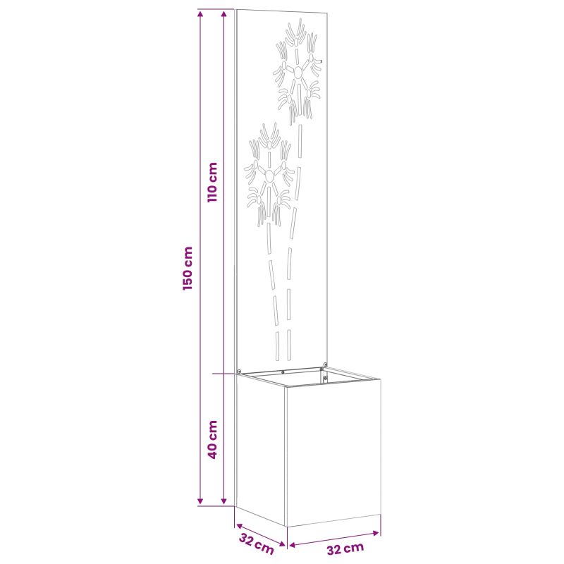 Декоративният екран за градина е стилно решение за създаване на персонализирани градински пространства. Проектиран с модерен акцент, елегантният му вид е идеален за съвременни естетики, с чисти линии и минималистичен дизайн. Добавя елегантна нотка към всяка градина или тераса, като служи за функционален и декоративен елемент. Здраво стоманено строителство Изработен от качествена стомана, този градински екран предлага дълготрайност и здравина, идеален за открито. Стоманата е устойчива на неблагоприятни условия и осигурява години на поддържане на уединение и декорация. Декоративни инкрустации Сложните орнаменти на екрана повишават визуалната му привлекателност. Тези инкрустации превръщат функционалната част в произведение на изкуството, което е приятно за окото и изпълнява основната си роля за разделяне на пространството. Лесен монтаж Монтажът се извършва с прости стъпки и е подходящ за двама души. Процесът е улеснен за тези, които искат да преместват или коригират екрана, което позволява гъвкавост в дизайна. Матово покритие Непрозрачният вид се постига чрез качествена повърхностна обработка. Това матово покритие минимизира отблясъците и позволява приятна визия през целия ден, като се вписва лесно в всяка градинска обстановка. Подходящ за открито Специално проектиран за външна употреба, той устоява на дъжд и слънце, като се закрепва стабилно в земята. Неговият дизайн осигурява максимална функционалност и стабилност.