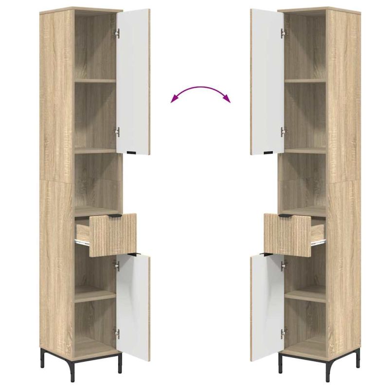 Шкаф за баня с чекмедже с врата Сонома дъб 31,5 x 33 x 190 см