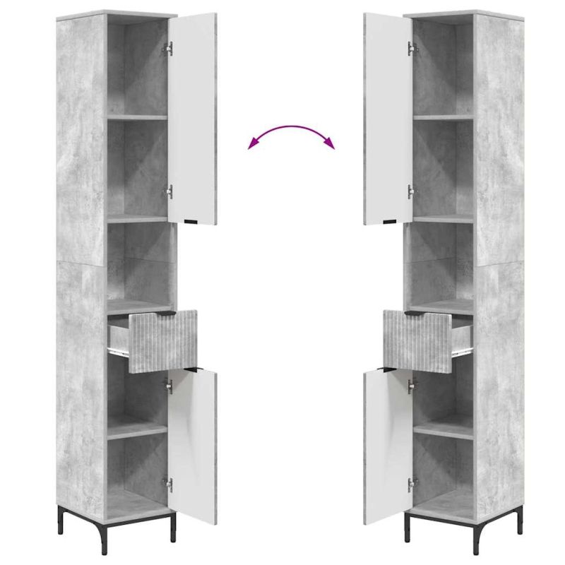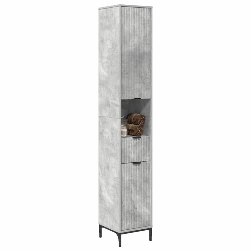Шкаф за баня с чекмедже Циментено сиво 31,5 x 33 x 190 см