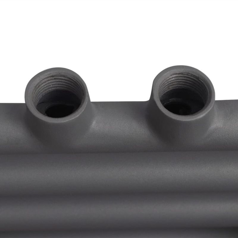 Този радиатор за кърпи е предназначен за двойна употреба, както за затопляне на кърпи, така и за отопление на помещение. Той поддържа банята топла, без мухъл и кондензация, и в същото време е подходящ за сушене на големи кърпи и халати. Благодарение на системата за циркулация на гореща вода, която не използва електричество, вашите кърпи ще бъдат сухи за нула време. Лирата има 8 напречни, стоманени тръби, боядисани в сиво, с диаметър 22 мм. Тези тръби са допълнително удебелени и поради това отделят значително количество топлина. На горната и долната част има конектори за оптимален поток на водата. Лесна за сглобяване и поддръжка. Доставката включва 1 лира за баня, скоби за стени и винтове. Децата трябва да бъдат наблюдавани, за да се гарантира, че не играят с уреда. Пазете децата далеч от зоната за сглобяване. Внимание: Прочетете внимателно инструкциите преди употреба и ги запазете за по-нататъшни справки.