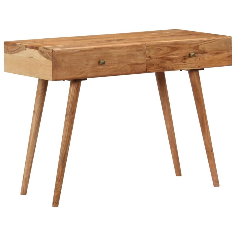 Бюрото излъчва рустик чар и ще бъде централна атракция за вашия интериор. Това писалище е изработено от масивна акациева дървесина с нанесено покритие с цвят на пчелен мед, което му придава красив вид и топъл цвят. Изработката и красивите дървесни шарки правят всяка мебел уникална и малко по-различна от следващата. Това бюро разполага с 2 чекмеджета, осигуряващи място за подреждане на вашите бележници, книги и различни други предмети. Освен това тази маса за компютър може да служи и като конзолна маса, маса за коридор или странична маса. Важна забележка: Шарките при всеки артикул варират, което прави всеки от тях уникален; доставката е на случаен принцип.