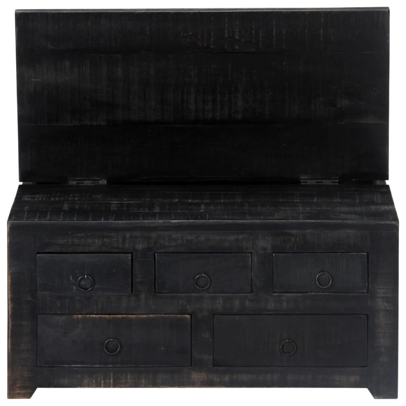 Отличаваща се с рустикален чар, тази зашеметяваща дървена масичка за кафе ще бъде вечно допълнение към вашия декор. Нейният масивен плот осигурява стабилна и сигурна повърхност, върху който можете да поставите напитки, вази, фруктиери и други орнаменти. Тази практична масичка за кафе ще бъде идеална за поставяне на мултимедийни уреди, книги, списания или дребни предмети, които бихте искали да ви бъдат подръка. Благодарение на здравата конструкция и материалът от мангова дървесина, масата е изключително издръжлива. Манговата дървесина е плътна, здрава и твърда, с красиви ивици и контури на повърхността. Всяка стъпка от процеса се извършва с най-голямо внимание, било то полиране, боядисване или лакиране. Масата разполага с 5 чекмеджета и повдигаща се повърхност, под която можете да съхранявате разни дреболии, мултимедийни уреди, игрални конзоли и списания. Отпуснете се и се насладете на чудесно прекарано време със семейството и приятелите си около тази уникална масичка за кафе! Важна забележка: Цветовете на отделните артикули варират, което прави всяка маса уникална; доставката е на случаен принцип.