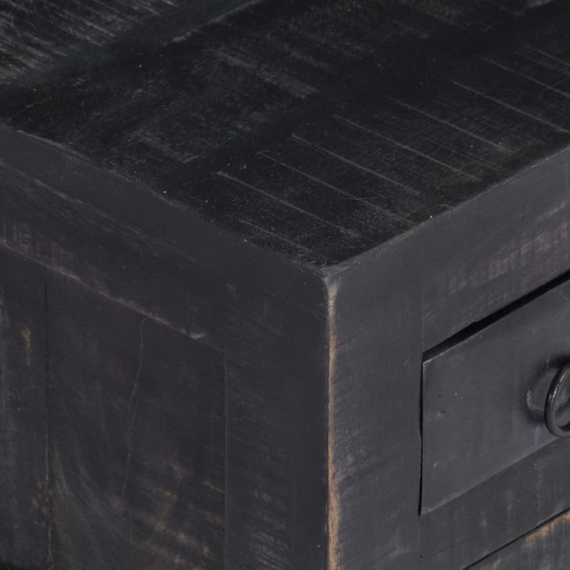 Маса за кафе, черна, 65x65x30 см, мангово дърво масив