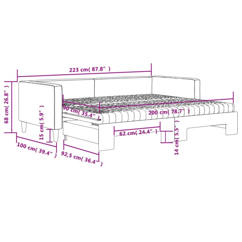 Канапе с изтеглящо легло и матрак кремаво 90x200 см плат