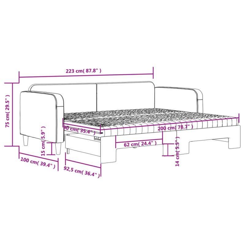 Това канапе 2-в-1 с изтеглящо разтегателно легло, което служи едновременно като диван и легло, е практично и атрактивно допълнение към вашата всекидневна или спалня. Функционална мебел: Канапето функционира като диван през деня и лесно се превръща в двойно легло през нощта чрез издърпване на механизма за изтеглящо разтегателно легло, осигурявайки удобно решение за настаняване на гости и увеличаване на пространството.Комфортен матрак от дунапрен: Тази кушетка се доставя с два матрака от дунапрен за максимална опора и оптимален комфорт.Издръжлива материя и солидна конструкция: Това канапе има здрава рамка от дърво и метал и е тапицирано с издръжлива и удобна материя.