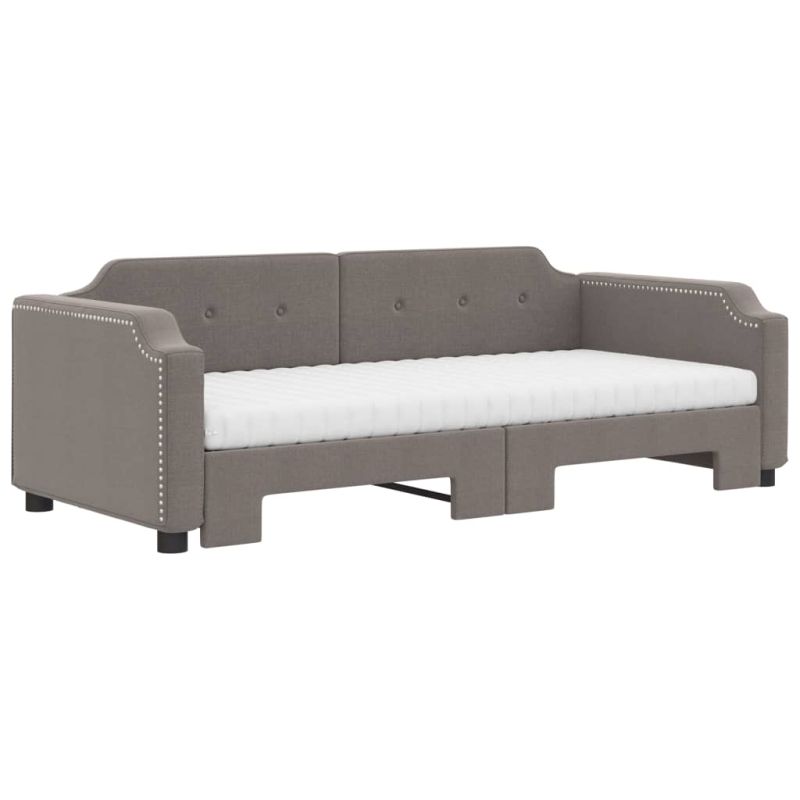 Канапе с изтеглящо легло и матрак таупе 90x200 см плат