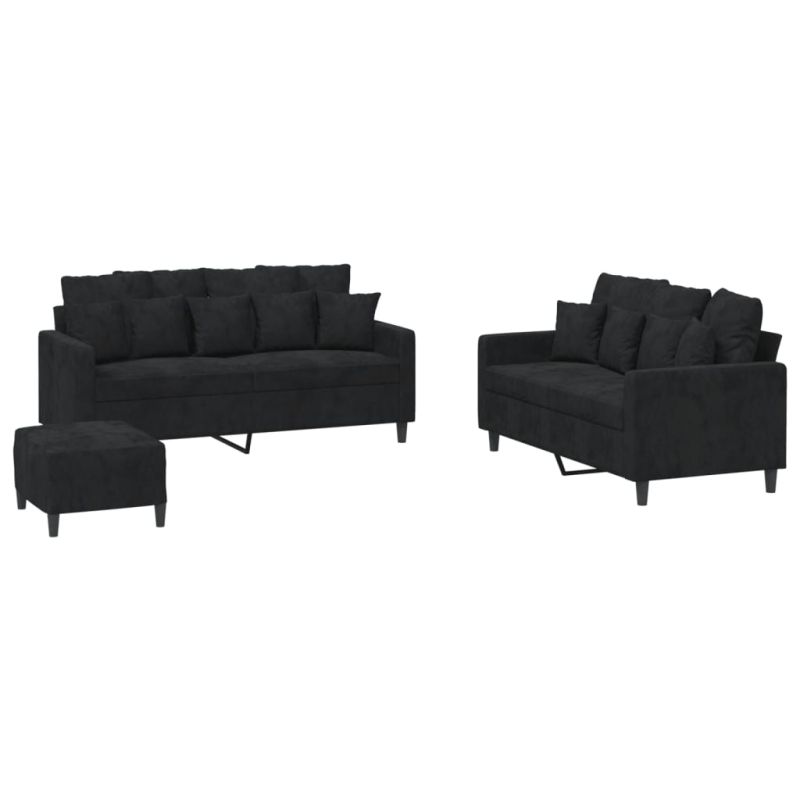 Комплект дивани от 3 части с възглавници, черен, кадифе